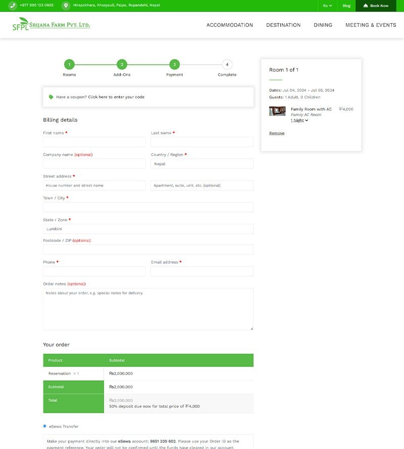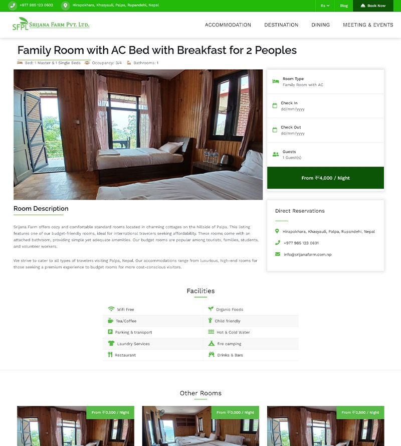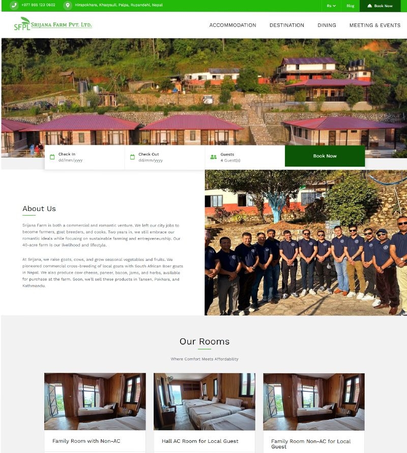 Hotel Booking & informative website Srijana Farm Pvt. Ltd. | Palpa